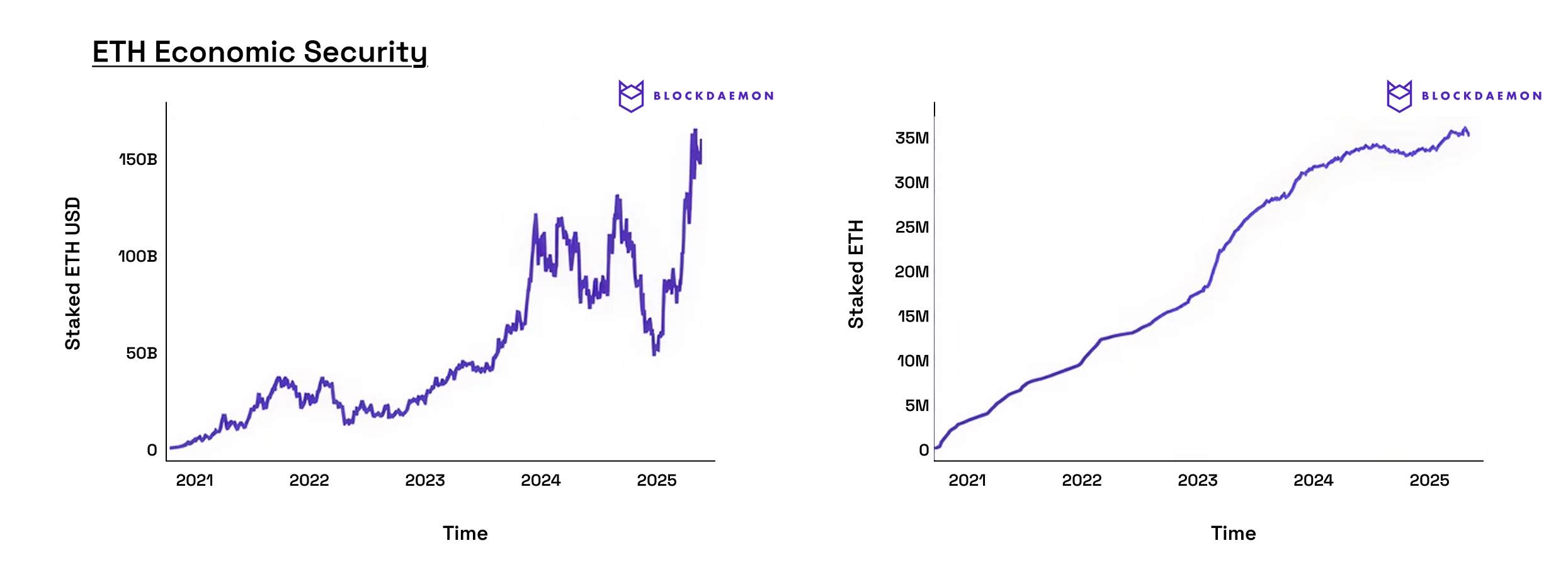 Even during significant exit events, Ethereum's economic security remains robust. The time-delayed nature of exits means that validator set reductions occur gradually, allowing the network to maintain high attack costs throughout transition periods. Currently, with over ~35 million ETH staked in the network, an attacker would need to control approximately ~11 million ETH (one-third of the validator set) to potentially disrupt consensus, representing over $52 billion at current market prices, making such attacks economically prohibitive even during active withdrawal periods.
